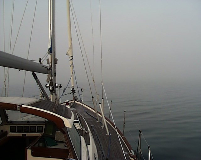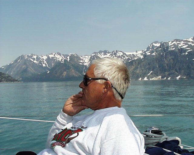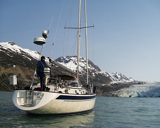 From Juneau to Glacier Bay, anchoring at Reid Glacier Monday July 5th After a morning trip to Gas N' Go to replenish our propane tanks (the cab fare cost twice as much as the propane), we left the intermediate vessel dock in Juneau to motor southeast through Gastineau Channel. Rounding Point Tantallon on the southeast tip of Douglas Island we then headed south towards Admiralty Island, in the hopes of spotting some griz., or grizzly bear, better known as brown bear. The Tlingit (Tribe) word for Admiralty Island was Kootnoowoo, or "fortress of the bears." Admiralty Island is home to more than 1,600 brown bears, which equates to one bear per square mile. This is not the island where you want to row ashore for a picnic. Or to take Fifi for a walk. Without her leash. Or to watch your dinghy drift away because you forgot to tie it off during incoming tide. (I have heard, however, that several boaters have been known to inadvertently leave their mother-in-law behind here.) The scientific classification for brown bears is Ursus arctos, and the subspecies classification is horribilis. I don't know what ursus refers to. I invite those of you fluent in Latin to clue me in. I am guessing that arctos refers to someplace cold and northerly, like Alaska, for instance. Horribilis, on the other hand, refers to something very unpleasant. Male grizzly bears weigh in around 300 pounds, while the larger Alaskan Kodiak brown bear averages 800 pounds. They generally inhabit open areas, including plains and tundra. When active they can eat up to 90 pounds of food per day. You can conclude some very important information from these descriptions: you don't want to surprise one while taking a stroll in the tundra. It would be much better, for example, to stroll in a group. (This brings into effect the axiom of marginal safety: When strolling in a group, and encountering a bear, you don't have to be able to outrun the bear. You only have to be able to outrun the slowest person in the group.) As we head south towards Admiralty Island, the wind perks up to about 15 knots, so we unfurl the sails in an attempt to catch some wind and travel without engine noise. As we draw up parallel to the shore of Admiralty Island, we see no bears, at least for today. Around 15:00 we turn to port around Point Retreat on the northern tip of Mansfield Peninsula, and now head south in Lynn Canal. The weather has turned. We beat into two foot chop under 25 knots of wind directly on the nose. But the pounding is short-lived. By 17:25 we are anchored in Crab Cove within Funter Bay, on the west side of Mansfield Peninsula. It seems logical that Crab Cove would have some crab, so I bait the crab trap with leftover bones from our BBQ rib dinner, and throw in a can of cat food for extra margin. I decide to leave the trap in overnight. Tuesday July 6th Awakening to partially sunny skies, the first order of business is the crab trap. With great excitement, I row out to the trap, haul it up, discover three good size crab, and then row back to the boat to show my comrades. Upon closer inspection at the boat, all three specimens prove to be females, and so back into the Crab Cove they go. All of them try to pinch me as I pull them from the trap. If they only knew what a favor I was extending to them. We are underway by 10:30 accompanied by increasingly sunny skies. Only 1/4 mile northwest of Station Island, directly outside of Funter Bay, a humpback whale surfaces directly to starboard. He is about 50 feet away, running parallel with Andanté's course. His long curved back and small dorsal fin slice silently and effortlessly through the water as he surfaces for air, and explodes a column of mist as he exhales. We cut the engine to entice more attention from him, but he disappears after his second dive, only to surface five minutes later over 1/2 mile to the south. South of Point Couverden, on Couverden Island, the wind picks up. We sail with full main and genoa under blue skies with 12 knots of wind. Sailing southwest into Icy Strait, we tack north to the Sisters Island at 58º 09.52 north, and 135º 14.89 west. During our sail, a call to Glacier Bay confirms our permit, but also opens up the opportunity for us to enter the park and complete the orientation this evening instead of tomorrow, which we decide to take advantage of. A few quick navigation calculations inform us that we will not be able to arrive at the park this evening under sail based on current course and speed. So, with reluctance, we furled the sails and fired up the diesel. It's a long run to Bartlett Cove, and we arrive at 18:45, in time to complete our orientation. Total distance for the day: 51.7 nautical miles. Our orientation consists primarily of a packet of information with the sound advice "read this later," and a ten minute video. The video includes too much detail to remember at first pass, and so the ranger finds us rewinding the tape at several intervals, whereupon we are told "everything is in the information packet." So the purpose of the video, clearly, is not to communicate information, but rather to simply have a nice looking video. But perhaps I'm expecting too much from the park service. The information packet includes significant detail about the number of land ecosystems (five), the number of marine ecosystems (three), the importance of keeping pets on a leash (very), and the need to check your firearms--presumably because several boaters have, in the past, become angry at not being allowed to rewind the video, and have leveled their firearm on the closest ranger. This behavior is now clearly verbotten. But I digress. Useful information in the information packet, such as the recommended anchorages throughout the park, isn't provided. So, valuable information is gleaned only by asking the ranger pointed questions that can't be answered in 'yes' or 'no.' We are also free to copy the recommended anchorages onto a black & white photocopied map from a poster on th