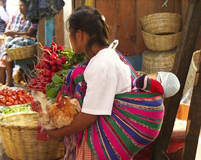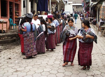 Monday, June 5th, we visited the ancient Mayan archeological ruins of Iximche. Based on a miniature reconstruction in the adjacent museum, Iximche appeared to be a fairly large city in its day; housing thousands of Mayan inhabitants. Today, Iximche is tranquil and peaceful, devoid of the tour guides and vendors that crowd larger more popular sites. Few people seem to be aware of its existence. No signs lead the way. Mike, our driver, had to repeatedly ask for directions while winding his way through the nearby village. The calm and peacefulness of the grounds provide an almost mystical tranquility—appropriate for contemplating what Mayan civilization must have been like over 1000 years ago. Originally thought to be a peaceful people, archeologists have now changed their opinions about the Mayans. Mayan people were combative and warring, often seeking royalty from neighboring cities for human sacrifices. An accidental discovery provided an interesting link between the past and today. I walked the length of the site and found myself in a grass field at the back of the ruins. I noticed several people walking toward me from the wooded area directly behind the field, however. I walked forward to investigate, and, from a distance, saw what I initially thought was a backpacker camp site: smoke rising from a flat area with what appeared to be brightly colored nylon tents. Closer inspection, however, revealed a contemporary, sacred, Mayan offering site. Positioned in front of yet-to-be excavated ruins were piles of offerings. What I thought were brightly colored nylon tents turned out to be bouquets of yellow flowers. In addition to flowers, Mayans heaped the ground with whole bananas, slices of watermelon, and even two geese. The smoke that initially appeared to be a campfire turned out to be smoke from burnt offerings, and, I think, incense. A large section of ground in front of the offerings was charred black and gray. The only sound came from flies buzzing around the decay. My discovery made my visit to Iximche even more mystical. I wondered what the contemporary Mayans, who made these offerings, thought about the site, and their ancestors. And I marveled at the continuity of these ancient people. Panajachel and Santiago Atitlán