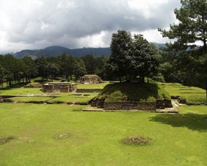 During the afternoon that we visited, an elaborate Guatemalan wedding filled the open-air courtyard. Based on the sequence, format, and music, the wedding could have been held anywhere in the US. The only difference was lingual. Later in the early evening, as dusk fell, Mike drove us out in the countryside to Valhalla, an experimental botanical station, with 400 varieties of Macadamia trees, run by Lorenzo (Larry) and Emilia Gottschamer. By experimenting with various genetic strains over the past 20 years they have achieved their goal of sustainable agriculture—high quality, high yield trees that can reproduce themselves without grafting. The Macadamia tree, we learned, converts up to 63 cubic feet of carbon dioxide to oxygen every day, and sends 50 gallons of water vapor into the atmosphere. Macadamia nut oil, however, is used by cosmetic companies as the key ingredient in all anti-aging creams. But these products are heavily watered-down. At Valhalla you can purchase 100% pure Macadamia oil and cream. Lorenzo's Macadamia oil is pressed by 20 tons of hydraulic pressure, and then filtered to remove all water and impurities. You can also sample gourmet Macadamia nut dark and light chocolates, as well as Macadamia nut butter. While the achievements at Valhalla are impressive, they seem insignificant to Larry's stories about being a firefighter in San Francisco. Iximche—Mayan Archeological Site