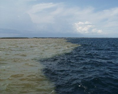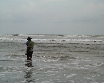 On the way out of Puerto Quetzal we encountered a distinct water line when the muddy waters of Quetzal Bay, churned up by a recent storm, met the deep blue waters of the Pacific. The only other time I had seen anything similar was when we approached Juneau, Alaska, a year earlier and saw the silty turquoise glacial run-off collide with the icy blue water of the northern Pacific. Friday June 9th, 2000—After an overnight passage we arrived at 13:00 at the contact point for the pilot to guide us into Bahia del Sol. We radioed on VHF to the resort. They responded and asked us to wait for several hours until the surge over the sand bar subsided. We held at the contact point (13º 14.99' N and 88º 53.40' W) until a panga arrived around 17:00 and dropped off a pilot on Andanté to guide us in. The exhilarating trip over the sand bar required us to surf the waves; our entrance speed hit 12 knots. I didn't look aft. I wanted to shoot a photo, but I couldn't seem to pry my hands away from the helm. At 18:00 we were anchored off the resort Bahia Del Sol. One other cruising sailboat was there: Jan and Simon Turner on Quantum Leap. Just after we anchored a skiff pulled up with a sailor from the El Salvadoran Navy. He boarded us, slung his rifle, reviewed our papers, and made notes in his notebook as he sweated profusely, which made us feel like our sweat glands were functioning normally after all. This seemed to be a courtesy visit, because he did not take our international zarpa or stamp our passports. We would have to find a time and place to get the real work done later. It appeared that the sailor was still in the process of learning this job, because he recorded our three names in his notebook using three different sequences: 1) Last name, middle name, first name. 2) Middle name, first name, last name. 3) Middle name, last name, first name. I tried to point out his notation inconsistencies by numbering the appropriate sequence of the names, but this only seemed to confuse the matter. After we waved him good-bye we motored our dinghy in to the resort and attempted dinner on the outdoor patio overlooking the estuary. Unfortunately the mosquitoes were out in force. So we asked to move to the indoor restaurant. We followed our server, Armando, into the restaurant which he opened up for us. He unlocked the door, turned the lights on, and then started the air conditioner—a rare treat given days of exposure to hot humid weather. The three of us ordered something simple from the menu—lobster thermidor—which was served to perfection. Needless to say, our first impression of El Salvador was quite favorable, although expensive. Three lobster dinners and a bottle of wine came out to $85.00. American Express accepted, however.