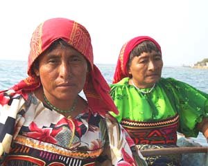 But today, the San Blas Archipelago overflows with cruisers from the US, Canada, France, Germany, Italy, and other countries. And the Kuna now look to these cruising outsiders as a prominent source of income. Kuna women aggressively sell molas, vivid patterns stitched from brightly colored fabrics. The men sell crabs, lobsters, molas, and their labor. The primary cash crop, however, continues to be coconuts. Each tree on every island is individually owned. Nuts are sold to Colombia, but the market is diminishing over time, leaving the Kuna with a dwindling source of income, and even more dependent on cruisers. (The only way to visit this unique geography and culture is by boat.) Kuna society is tribal, dominated by the village chief. Strict laws govern the behavior of their citizens: Kunas must pay for permits to travel to other villages or mainland Panama, although some children attend the university in Panama City. The society is also matriarchal, dominated by women. Husbands move into the compound of the wife's family. Better toe the line boys.