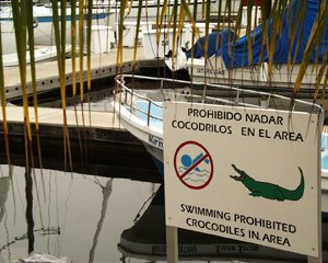 Had you visited Ixtapa in the 60s you would have discovered a coconut plantation. Ten years later, in 1970, Fonatur, the organization responsible for developing tourism within the Mexican government, selected Ixtapa as the Pacific Coast version of Cancún (which they also developed). According to the Lonely Planet guide on Mexico, Fonatur had three criteria in selecting a Pacific Coast site: 1) an average temperature of 27ºC and 81ºF, 2) tropical vegetation, and 3) great beaches. We didn't find the beaches, but we did find a slip for Andanté in Marina Ixtapa, a very quiet flat-water, no-surge marina with approximately 250 slips. For the first time that I remembered since leaving for Alaska over a year ago, we felt no movement from the water. It was like living on a motor home. Marina Ixtapa did have one disadvantage, however: No Swimming, because the marina's waters are home to crocodiles. Ixtapa, however, has no central town or shops—only hotels fronting the beach. A four peso and five mile bus ride to the south lies the more populated town of Zihuatanejo. As the famous quote goes, "there's more there, there."