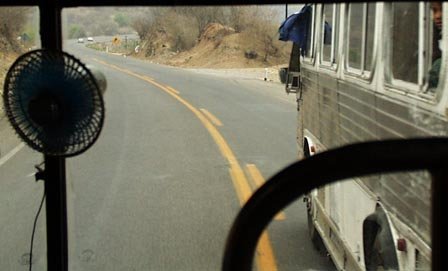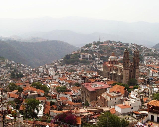 Zihuatanejo, like most Mexican towns on the Pacific, has evolved from a simple fishing village to tourist trap extraordinaire. Many locals earn their living either with souvenir stores or restaurants, and the souvenir stores seem to have a wide variety of homogenous offerings: T-shirts, beach towels, Mexican souvenirs. Some stores, however, offer more selective merchandise, as evidenced by the photo on the right. Although the caption suggests these amigos were partaking in one of Cuba's major exports (Cuban cigars are banned from export to the US), the boys were actually doing market research on indigenous Mexican Montebellos. The reviewer's consensus conclusions: "Mild flavor, easy draw, an excellent cigar for $1.80. US." Making Connections to Taxco We decided to take a trip to Taxco, where most, if not all, of the silver in Mexico is mined. We made the trip by bus on Sunday, May 7th, and getting there required a few connections. Initially, one local had informed us that "busses leave for Taxco hourly." After we arrived at the bus station in Zihuatanejo around 8:45 Sunday morning, expecting to catch the 9:00 bus to Taxco, the ticket sales lady informed us that the bus for Chilpancingo—ostensibly the city offering the fastest transfer to Taxco—had already left. The next bus to Chilpancingo left at 11:00. As an alternative, we opted to take the four hour bus to Acapulco, where, according to the same woman, more connections were available to Taxco. We arrived at the Acapulco bus station around 14:00, and discovered that the next direct bus to Taxco left at 20:40 almost seven hours later. But we did find a bus at 15:00 to Iguala, just 30 kilometers away from Taxco. In Iguala we were the only gringos in the entire city, attracting attention and turning heads wherever we went. From Iguala we hired a taxi to transit the final leg to Taxco. These connections were cumbersome, but not as interesting as the maniacal bus drivers from Guerrero state. All bus drivers insist on driving at least 70 MPH—including around curves on cliff-hugging walls. They pass everything in sight, and make keep-the-bus-rolling passenger pickups and drop-offs. Our bus driver from Zihuatanejo to Acapulco, who prompted me to put my book down half a dozen times to watch the unfolding scene, was a choirboy and a saint in comparison with our driver from Acapulco to Iguala.