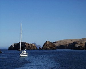 1130 - Back aboard Andanté, we motored back to the northeastern corner of the island to anchor and explore Scorpion's Landing. As the log correctly notes: "Crew practiced rowing the skipper wherever he demanded." 1630 - Exhausted by rigorous rowing exercises, everyone settled down for a nap. 1940 - After dinner, we set sail for Santa Catalina Island, about 80 miles distant to the southeast, sharing watches throughout the night. I had 2100-2400. Chris followed next from 2400-0300, and Jenny held her favorite watch from 0300-0600. I was the only one to enjoy wind and sailing time. The wind died on Chris's and Jenny's watch, requiring engine power most of the night. Up Next ... |