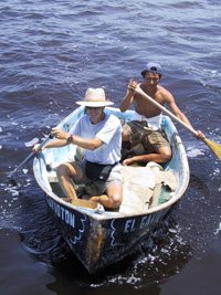 Amatitlan and Antigua The next morning, Sunday, June 4th, at 8:50, we walked past the armed gate at the entrance of the Navy Base and felt extremely secure in knowing that Andanté was safely protected by armed guard. We waited and waited. At 9:40 we suspected that something was wrong, and started to discuss alternate travel plans. But Mike didn't impress me as the kind of person who would stand us up. I asked a man, standing at the nearby bus stop, what time it was. 7:40, he responded. What? I walked around the corner to the entrance gate at the naval station and asked the officer on duty for the time. 7:40, he responded. It appeared that when immigration checked us in the previous day, a communication breakdown occurred due to the Spanish-English language translation. Somehow our watches got set two hours earlier, even after we asked for confirmation of the time after resetting them. We were out standing in front of the naval base waiting for Mike's taxi two hours early. Once we had the correct time zone straightened out, we waited patiently, for another hour and twenty minutes, until Mike arrived at 9:00, right on time. We all thought about how nice it would have been to sleep in for an extra two hours, instead of standing in the hot sun.