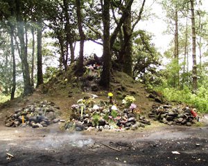 Monday, June 5th, we visited the ancient Mayan archeological ruins of Iximche. Based on a miniature reconstruction in the adjacent museum, Iximche appeared to be a fairly large city in its day; housing thousands of Mayan inhabitants. Today, Iximche is tranquil and peaceful, devoid of the tour guides and vendors that crowd larger more popular sites. Few people seem to be aware of its existence. No signs lead the way. Mike, our driver, had to repeatedly ask for directions while winding his way through the nearby village. The calm and peacefulness of the grounds provide an almost mystical tranquility—appropriate for contemplating what Mayan civilization must have been like over 1000 years ago. Originally thought to be a peaceful people, archeologists have now changed their opinions about the Mayans. Mayan people were combative and warring, often seeking royalty from neighboring cities for human sacrifices. An accidental discovery provided an interesting link between the past and today. I walked the length of the site and found myself in a grass field at the back of the ruins. I noticed several people walking toward me from the wooded area directly behind the field, however. I walked forward to investigate, and, from a distance, saw what I initially thought was a backpacker camp site: smoke rising from a flat area with what appeared to be brightly colored nylon tents. Closer inspection, however, revealed a contemporary, sacred, Mayan offering site. Positioned in front of yet-to-be excavated ruins were piles of offerings. What I thought were brightly colored nylon tents turned out to be bouquets of yellow flowers. In addition to flowers, Mayans heaped the ground with whole bananas, slices of watermelon, and even two geese. The smoke that initially appeared to be a campfire turned out to be smoke from burnt offerings, and, I think, incense. A large section of ground in front of the offerings was charred black and gray. The only sound came from flies buzzing around the decay. My discovery made my visit to Iximche even more mystical. I wondered what the contemporary Mayans, who made these offerings, thought about the site, and their ancestors. And I marveled at the continuity of these ancient people. Panajachel and Santiago Atitlán