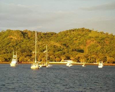 Thursday, June 15th, after a tranquil rest, we sailed southwest to Bahia Murcielagos, where we encountered the Papagayos—strong winds that whip down from the coastal plains and mountains. Sailing along with full sails in 17 knots of wind we rounded Cabo Santa Elena and turned south towards the Murcialagos. Within minutes, the Papagayos blasted down from the moutains and hit us with a burst approaching 30-knots. We quickly learned to sail Northwestern Costa Rica with reefed sails. Our anchorage at Bahia Murcielagos (Bat Islands) afforded us fantastic snorkeling and diving, including aquarium-clear water, warm temperatures, and even a school of 50 or more Manta Rays.We anchored in a small cove during the night, but the frequent Papagayos made for a bumpy ride. Friday afternoon we decided to sail to our check-in point in Playa del Coco, but had to wait for the winds to abate before crossing the Gulf of Papagayo. Finally, we hauled anchor at 17:00 and departed for the crossing. We arrived at Playa del Coco that evening. Fortunately, the Papagayos gave us a break; we crossed the gulf in calm weather. Playa del Coco—Official Port of Entry