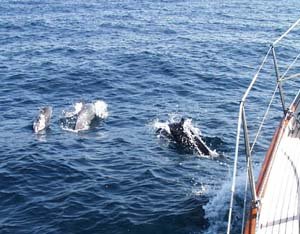 We made the 280-miles from Playa del Coco to Golfito, Costa Rica in a week, stopping to anchor every night along the way: Bahia Tamarindo (watch out for the strange guy in the kayak), Bahia Garza (watch out for the reefs), Bahia Ballena (beautiful and sheltered), Quepos (some stores for provisioning), Bahia Uvita (exposed and rolling), Bahia Drake (we found a restaurant even though the locals said there was none), and finally Golfito. Anchored in Tamarindo, we had an unusual experience with a man who approached in a kayak. He asked the usual questions: Where were we from? Where were we going? But then started asking about the size of the boat and how many people were on board as he made notes in a small notebook. A bit disconcerting. The more specific questions he asked, the more evasively we answered. For the first time in a long time, we locked the boat that night, from the inside out. The beautiful, relatively unpopulated Costa Rican coastline peacefully slipped by, punctuated by sessions with the laptop computer. You know there's something wrong when you are cruising past such a beautiful coast while engrossed with your laptop working on income taxes. You can't escape from Uncle Sam, even in paradise. February 18th we sailed northeast in Golfito Dulce, the large gulf that leads to Golfito Bay. We were surprised to find virtually no boats enjoying a beautiful Sunday afternoon on the bay. Except for a lone fishing boat, we were the only craft around. In the United States this bay would have been filled with pleasure boats. But here, no one could afford any.