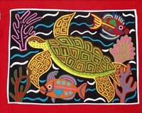 Late Thursday afternoon we checked in at Porvenir, the port of entry to the San Blas Archipelago. Early next morning a dugout canoe approached with two women, two young girls, and buckets of molas for sale. These women understood the concept of target marketing: they had staked out the entry port and made sure they were first in line for all recently arrived yachts. They pulled alongside and displayed some of the molas from the canoe. But soon one of the women asked, politely, if they could come on board. No sooner had the sounds "y es" formed on my lips than all four of them were on the aft deck with molas covering every square inch. They sold aggressively: While you looked at one, they tried to sell you five more. Want a mola of a fish? No problem; they had 15. Want a certain color? Twenty more appeared with the exact color you were looking for. The women sold not only molas, but necklaces, bracelets, mola shirts, and mola dresses. Inventory of small shirt sizes lacked a little bit. But what do you expect from a dugout canoe? I tried to use my expert negotiating tactics on the transactions, but the price was firm. You want to get 10 items for $100 instead of $130? They take two molas out. After you've paid the $100, they then immediately try to sell you the two additional molas that you were interested in for $30.00. This is called capitalism, and they seem to understand it much better than many of our elected representatives in Washington DC. So my proposal is that every US senator and congressman should be forced to spend six months in the San Blas selling molas from a dugout canoe.