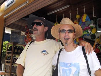 Zihuatanejo, like most Mexican towns on the Pacific, has evolved from a simple fishing village to tourist trap extraordinaire. Many locals earn their living either with souvenir stores or restaurants, and the souvenir stores seem to have a wide variety of homogenous offerings: T-shirts, beach towels, Mexican souvenirs. Some stores, however, offer more selective merchandise, as evidenced by the photo on the right. Although the caption suggests these amigos were partaking in one of Cuba's major exports (Cuban cigars are banned from export to the US), the boys were actually doing market research on indigenous Mexican Montebellos. The reviewer's consensus conclusions: "Mild flavor, easy draw, an excellent cigar for $1.80. US." Making Connections to Taxco We decided to take a trip to Taxco, where most, if not all, of the silver in Mexico is mined. We made the trip by bus on Sunday, May 7th, and getting there required a few connections. Initially, one local had informed us that "busses leave for Taxco hourly." After we arrived at the bus station in Zihuatanejo around 8:45 Sunday morning, expecting to catch the 9:00 bus to Taxco, the ticket sales lady informed us that the bus for Chilpancingo—ostensibly the city offering the fastest transfer to Taxco—had already left. The next bus to Chilpancingo left at 11:00. As an alternative, we opted to take the four hour bus to Acapulco, where, according to the same woman, more connections were available to Taxco. We arrived at the Acapulco bus station around 14:00, and discovered that the next direct bus to Taxco left at 20:40 almost seven hours later. But we did find a bus at 15:00 to Iguala, just 30 kilometers away from Taxco. In Iguala we were the only gringos in the entire city, attracting attention and turning heads wherever we went. From Iguala we hired a taxi to transit the final leg to Taxco. These connections were cumbersome, but not as interesting as the maniacal bus drivers from Guerrero state. All bus drivers insist on driving at least 70 MPH—including around curves on cliff-hugging walls. They pass everything in sight, and make keep-the-bus-rolling passenger pickups and drop-offs. Our bus driver from Zihuatanejo to Acapulco, who prompted me to put my book down half a dozen times to watch the unfolding scene, was a choirboy and a saint in comparison with our driver from Acapulco to Iguala.