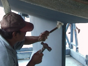 Wednesday morning, May 24th, they slipped the huge slings around Andanté's hull. The Travel Lift's engine roared as Andanté slowly rose off of her ground-based steel cradle. Triumphant! Until we noticed water leaking out of the aft, top section of the keel. Hmmm. Where was that coming from? Upon closer inspection, I mean after chiseling the keel apart, we discovered water leaking out of a vertical seam that bisected the back of the keel. Hammer and chisel unveiled a small cavity where the keel connects to the hull. We set Andanté down back down on the cradle and decided to fix the problem then, with the convenience of a Fiberglas specialist close at hand. Work on the fiberglass repair started as soon as Andanté dropped off her slings. By the next day she had a new fiberglass skin inside and out, around the base of the keel. Thursday evening, May 25th, we departed. Our weather window was slowly shutting—we wanted to cross the Gulf of Tehuantepec by June 15th, the official start of the hurricane season in Southern Mexico. Up Next ... Log #31—The final ports of Mexico: Puerto Angel, Huatulco, and Puerto Madero |